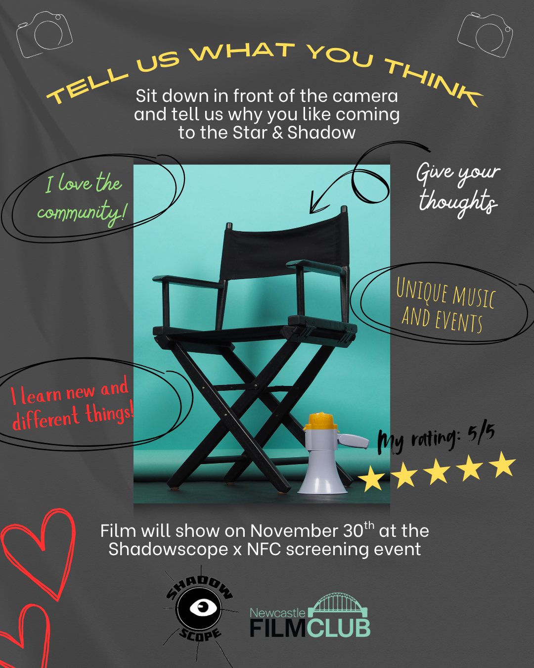 Shadowscope and Newcastle Film Club are joining forces to create a short film for Community Business Week that celebrates the Star & Shadow!